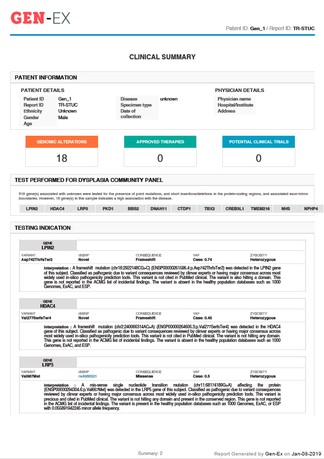We created a high-fidelity prototype for the clinical report, which is the output of the analysis run by the clinician/researchers using their raw data fastq file. The clinical report has detail information about the genes, variants etc. It has in-depth details of the variants whether it is pathogenic or benign. While we did the usability testing using the prototype, the researchers were happy to view the report which has the information what they wanted. But the clinicians were not happy because they had the information they can understand but it can’t provide the treatment for their patients.